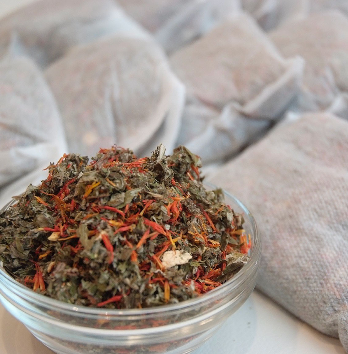 (生薬例:よもぎ・桂皮・薄荷・甘草・紅花・オレンジピール・桑の葉・たんぽぽ・ローズ・柿の葉)
